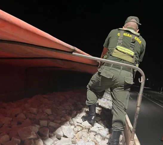 El procedimiento tuvo lugar en el Paraje Forestal, donde los gendarmes solicitaron la documentación correspondiente para el transporte de minerales. Según informaron fuentes oficiales, el conductor no pudo presentar la Guía de Tránsito de Minerales y Rocas de Aplicación, documento obligatorio para circular con este tipo de carga.