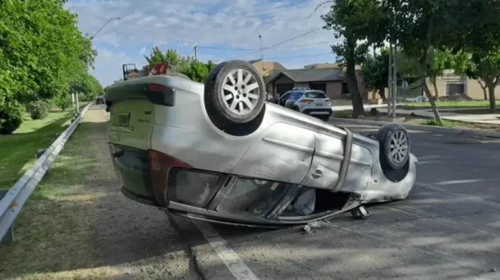 Según indicaron fuentes policiales, el rodado quedó dado vuelta sobre el asfalto, pero el hombre que lo conducía no sufrió lesiones de gravedad y solo presentó raspones leves.