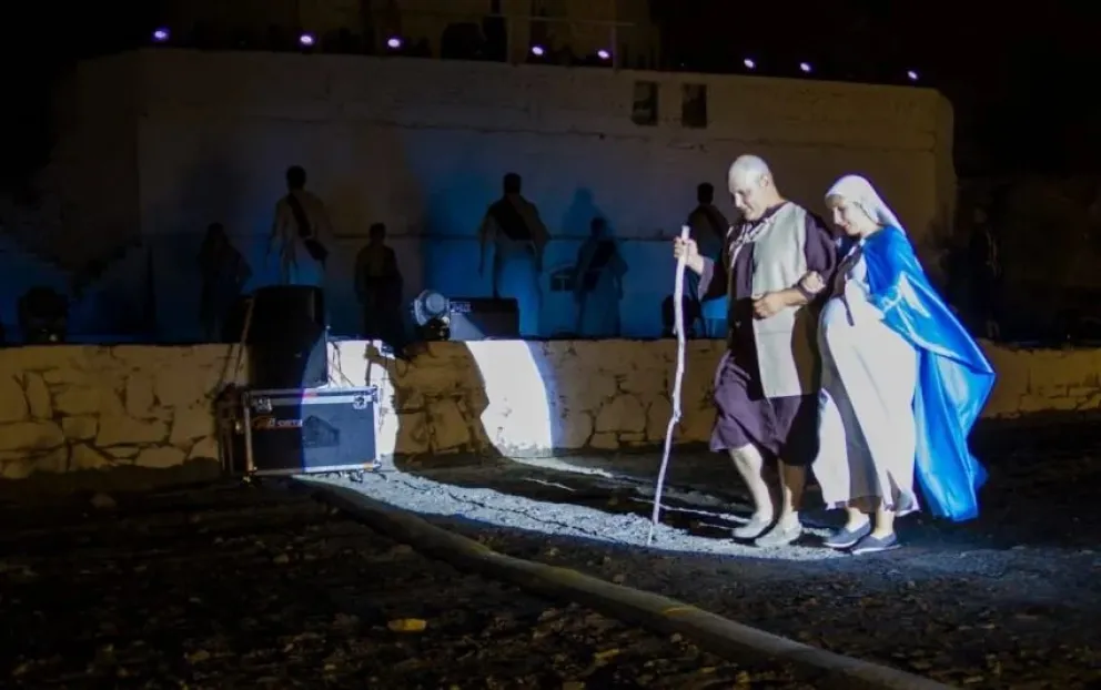 El espectáculo contará con la participación de alrededor de 300 artistas en escena, quienes recrearán el nacimiento de Jesús en un imponente entorno natural. La puesta en escena se caracteriza, como cada año, por el uso de vestuario y escenografía de origen sanmartiniano, además de un elenco integrado por actores y actrices de distintos puntos de la provincia.