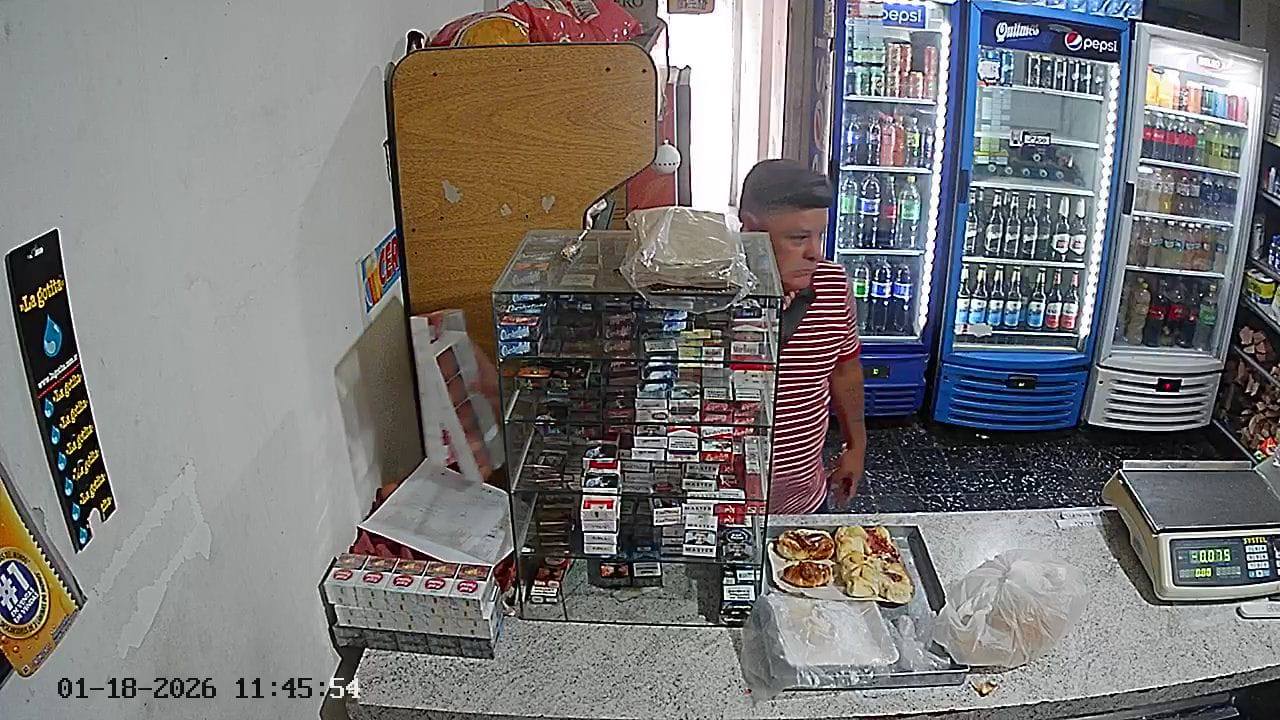 En las imágenes se observa a un hombre que ingresa al comercio y, aprovechando un descuido, sustrae varios packs de cigarrillos que se encontraban sobre el mostrador.